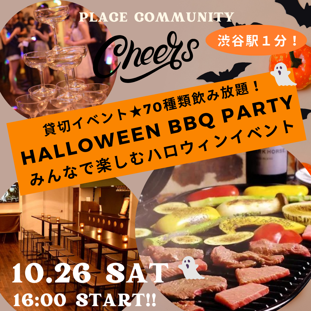 渋谷駅徒歩1分の場所にある素敵なパーティールームを貸し切ってバーベキューを楽しみながらのハロウィンBBQ交流会を開催します。