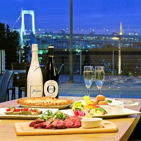 目の前に広がるダイナミックなオーシャンビュー、そして夜はその東京湾に浮かぶ美しい夜景とともに本場のイタリアンが楽しめる。特に素材やレシピにこだわり薪窯でカリっと焼き上げる本格ナポリピッツァは絶対に味わいたい1品です。